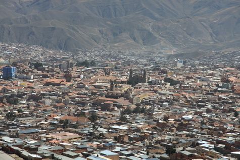En approchant du but, la végétation évolue encore, ressemblant de plus en plus à la puna de l’altiplano chilien. Finalement, nous débouchons au-dessus d’une ville quasi intégralement vallonnée. Voici Potosi ! La circulation est difficile : rues étroites, travaux de voirie, et de nombreux minibus. Il nous faut une grosse demi-heure avant de rejoindre notre hôtel, le Libertadores. Dès la descente du bus, nous ressentons le poids des 4070 mètres d’altitude. La respiration est plus difficile. Le rythme doit réduire illico. D’ailleurs les employés de l’hôtel montent nos bagages à l’étage pour nous épargner. Nous sommes aussi saisis par la fraîcheur.