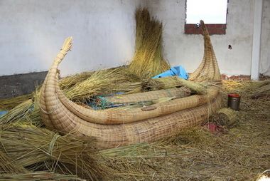 Quelques kilomètres de plus et nous faisons une nouvelle halte, choisie celle-ci. Nous sommes à Huatajata chez Paulo Esteban, constructeur d’embarcations en totora, la plante pousse sur les bords du lac Titicaca, sorte de roseau. Ce vieil homme doit sa notoriété à l’aventurier danois Thor Eyerdhal qui lui avait demandé de l’aide pour construire divers bateaux « antiques » afin de démontrer sa théorie des échanges entre civilisations. Un des plus célèbres fut le Kon Tiki. Le vieil homme prend plaisir à montrer ses photos. Sur place, nous pouvons voir diverses de ses réalisations, sur l’eau comme sur terre. Cela va des bateaux aux meubles en passant par diverses miniatures. C’est l’occasion de voir de vrais totoras, contrairement à ceux de Copacabana dont la superstructure est faite de métal.