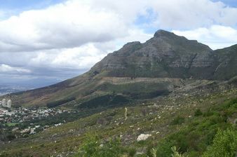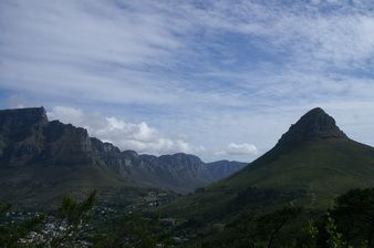 Nous descendons dans le centre vers le Waterfront pour récupérer la côte Atlantique. Après le stade de la coupe du monde, toujours en gros travaux, nous abordons le quartier résidentiel de Sea Point. On y trouve de nombreux hôtels, installés près de l’océan, au pied de Signal Hill. La plage est néanmoins peu utilisée, la température de l’eau variant entre 9 et 11°C. Du coup, une piscine d’eau de mer chauffée a été construite sur le front de mer. Suivent les quartiers toujours résidentiels de Bantry Bay et Clifton. A Camps Bay, une pause permet d’admirer les douze Apôtres, à condition bien sûr que les nuages ne s’y accrochent pas. Ce matin, tous ont mis leur bonnet. Ce sont les contreforts de la montagne de la Table qui s’avancent face à la mer tels des proues de navires échoués là.