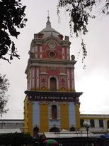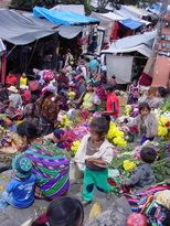 Au centre de la place centrale, plutôt cachés, ou plus exactement à l’écart des allées passantes, les habitants du coin tiennent cantine. Des femmes préparent à manger et vendent des repas à qui veut. C’est en particulier l’occasion de les voir préparer les tortillas de maïs qui constituent le pain local. De passage à Chichi, il ne faut pas manquer la « cathédrale ». c’est là qu’on s’aperçoit que la religion catholique n’a pas totalement conquis l’âme des indiens. En effet, l’église Santo Tomas est le siège d’étranges rites où se mélangent panthéons maya et chrétien. Les marches sont couvertes de vendeurs de fleurs ; le parvis est occupé par trois ou quatre personnes qui encensent (ou plutôt devrais-je dire enfument) l’entrée de l’église. Mais le plus surprenant se trouve à l’intérieur. L’allée est couverte de fleurs et de bougies directement posées sur le sol : tout autour les indiens prient ardemment leurs ancêtres mayas. Il en est de même sur les marches de l’autel. La seconde église située en vis à vis de l’autre côté de la place n’échappe pas à ces pratiques. Tant que nous sommes dans le religieux, parlons du cimetière totalement multicolore, chaque couleur symbolisant à priori la situation familiale du défunt. Nous ne l’avons pas approché mais jumelles et téléobjectifs nous ont permis de nous faire une idée.