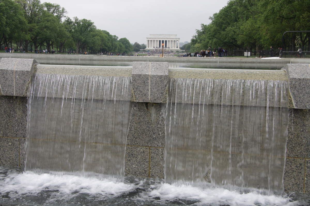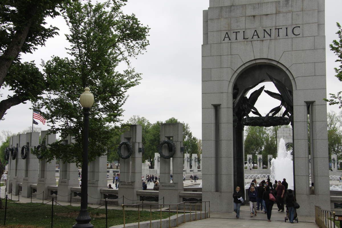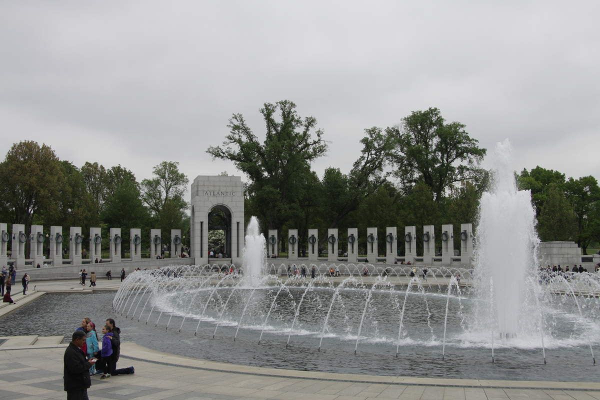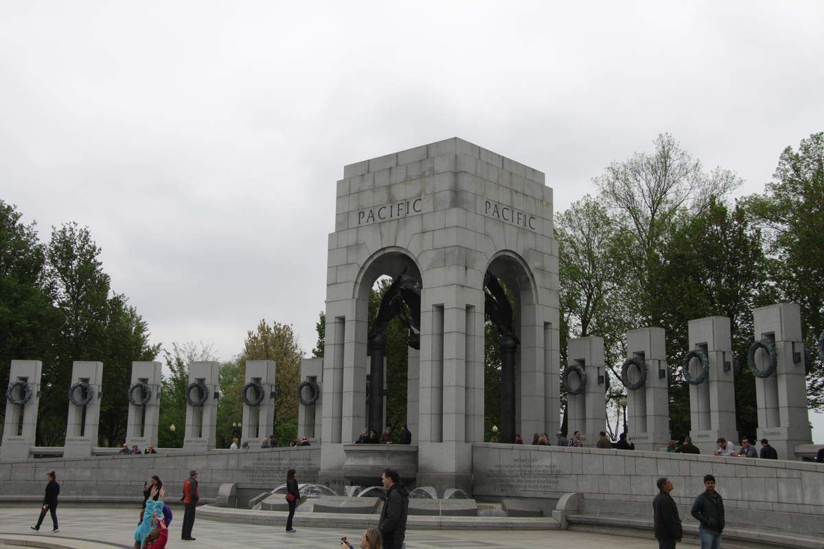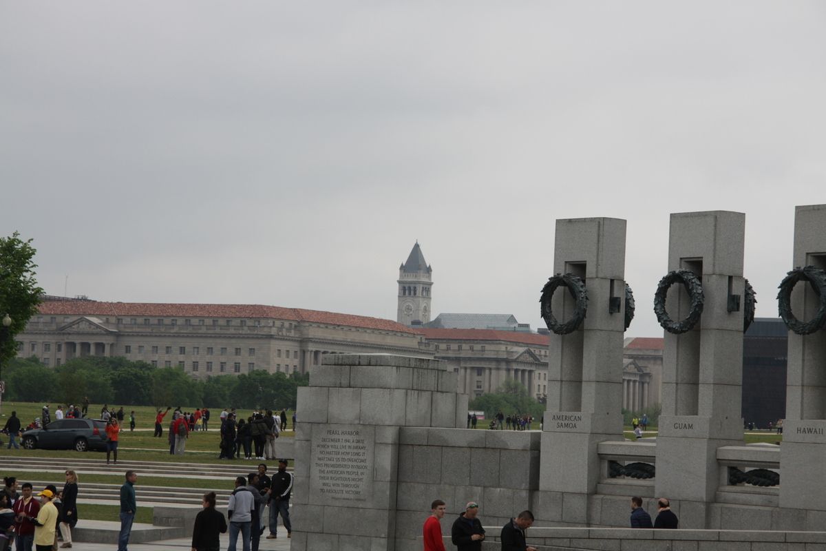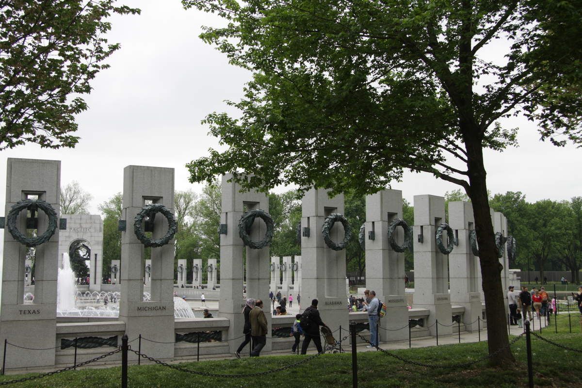 Direction l'axe du National Mall, en bordure de sa section occidentale pour rejoindre le mémorial de la seconde guerre mondiale. De tous les édifices consacrés au souvenir des conflits passés, c'est assurément le plus grand et le plus imposant même si dans la longue perspective du Mall, on ne le distingue quasiment pas grâce à une architecture adaptée pour l’intégrer sans perturber.