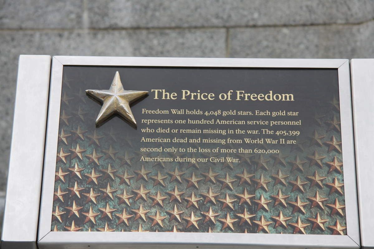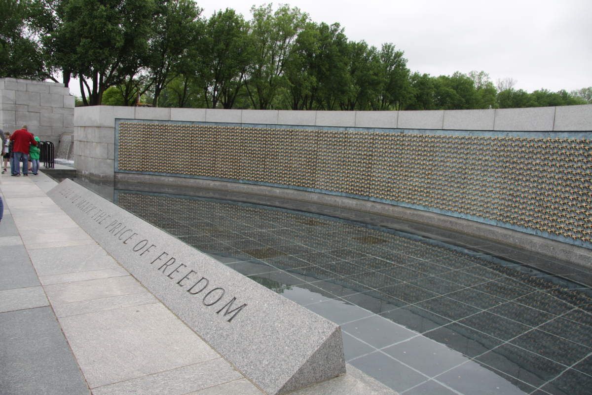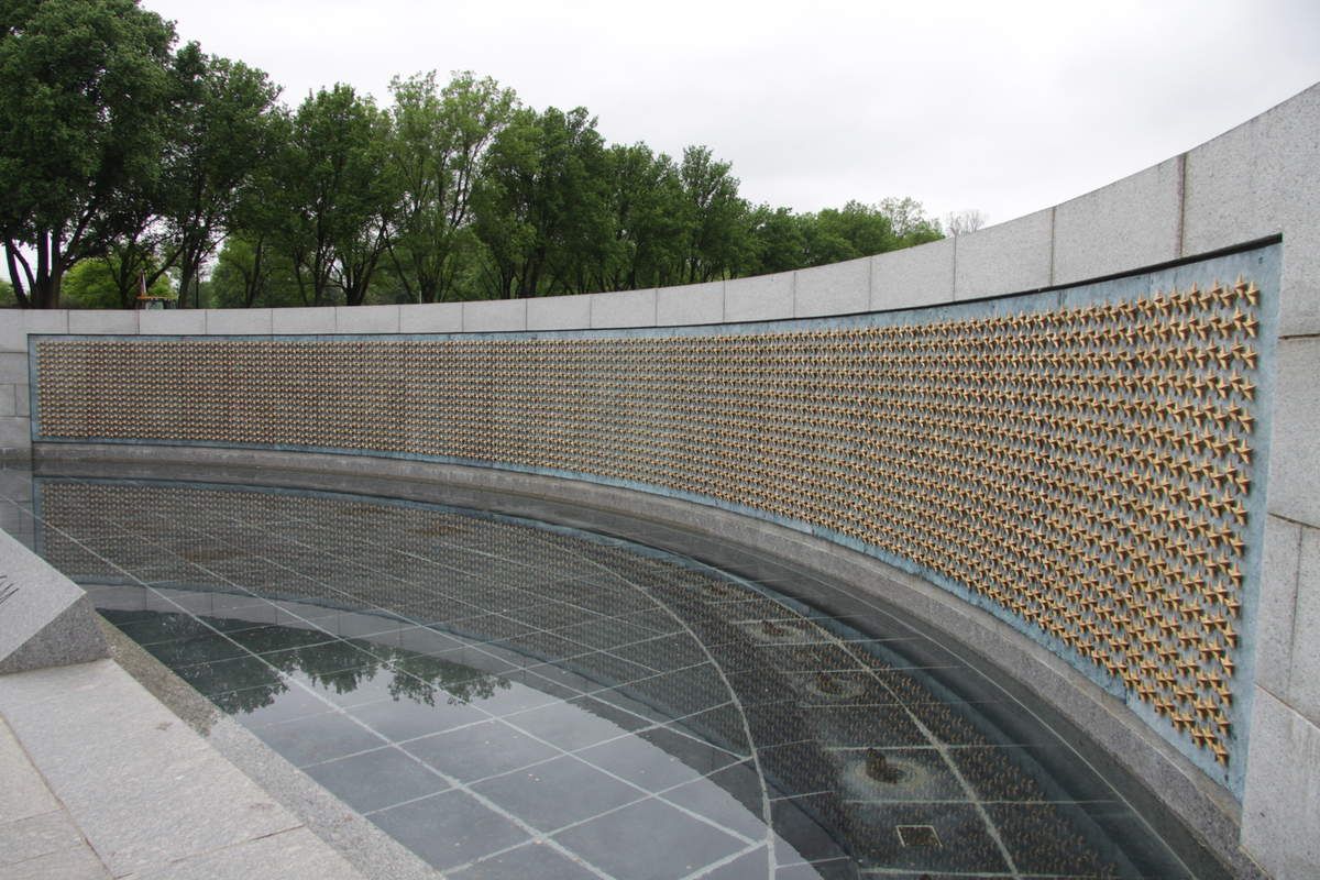Entre les deux déversoirs, la paroi incurvée présente 4048 étoiles dorées, chacune représentant cent soldats morts pendant le conflit. Le résultat est impressionnant, d'autant plus que bassin d'eau creusé en-dessous sert de parfait miroir et multiplie encore plus les étoiles. Côté est, un simple escalier assez plat mène vers le mémorial Washington voisin.