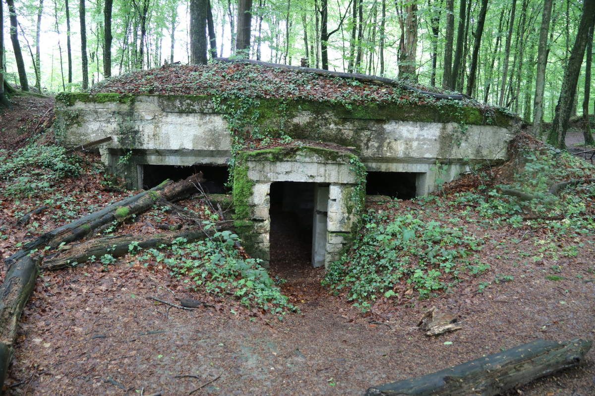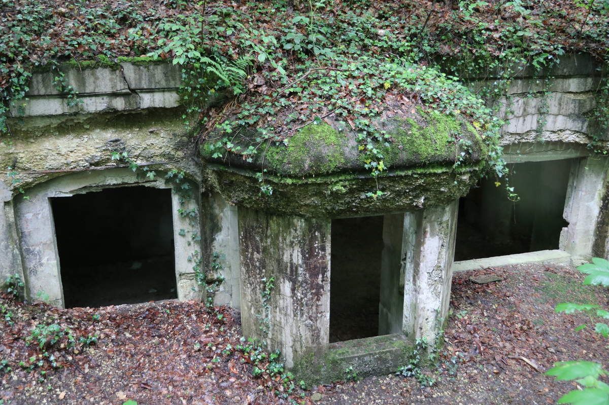 En suivant une petite flèche qui me conduit au sud de la ville, je finis par dénicher au bout d'un chemin boueux et défoncé, quelques fortifications, dites "abri du Kronprinz", le fils de l'empereur au moment de la guerre. Etonnant complexe que celui-ci : le fiston devait être bien hébergé. A priori, il semblerait y avoir plusieurs abris répartis sur les divers champs de bataille.