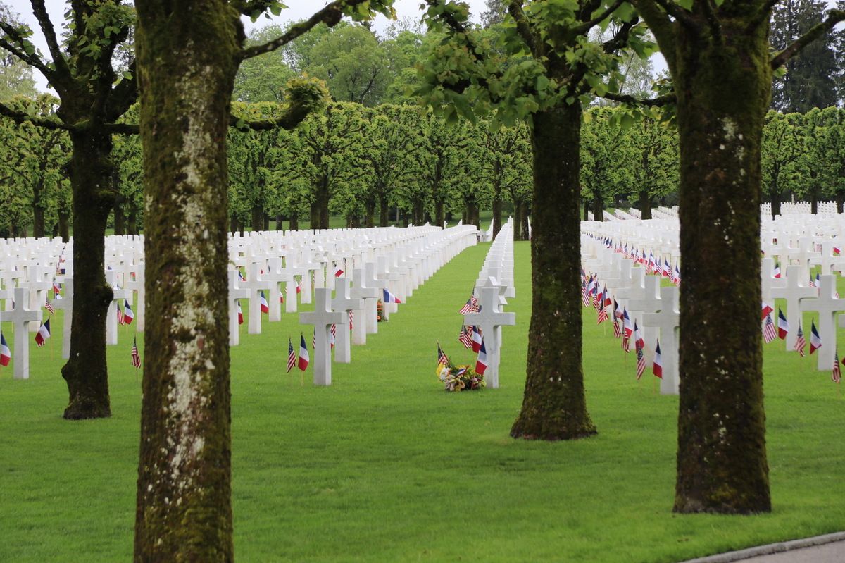 Dernière étape en rapport avec 14-18 à Romagne-sous-Montfaucon où se trouve un cimetière américain. On y retrouve toujours les mêmes caractéristiques quel que soit le lien dans le monde. Étonnamment, ici, on peut circuler dans le cimetière du moins jusqu'à l'abord des premières rangées de croix. C'est celui où repose le plus grand nombre de soldats américains en Europe.
